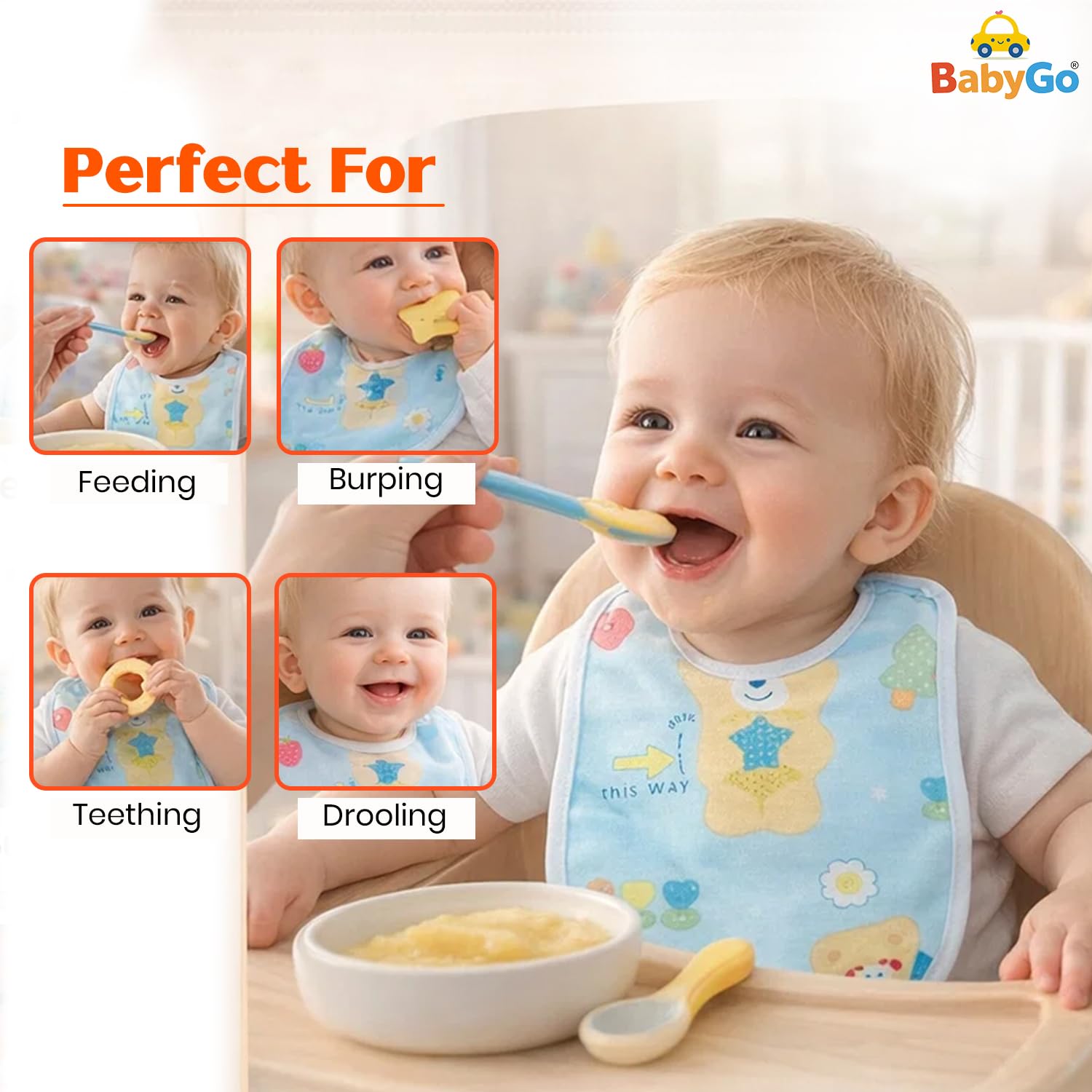 BabyGo waterproof baby bibs are perfect for mess-free feeding, drooling, and teething. Made with soft, lightweight, and reusable material, these baby feeding bibs keep clothes dry and clean. Ideal for newborns, infants, and toddlers, these washable baby bibs are gentle on skin and perfect for daily use at home or on the go.