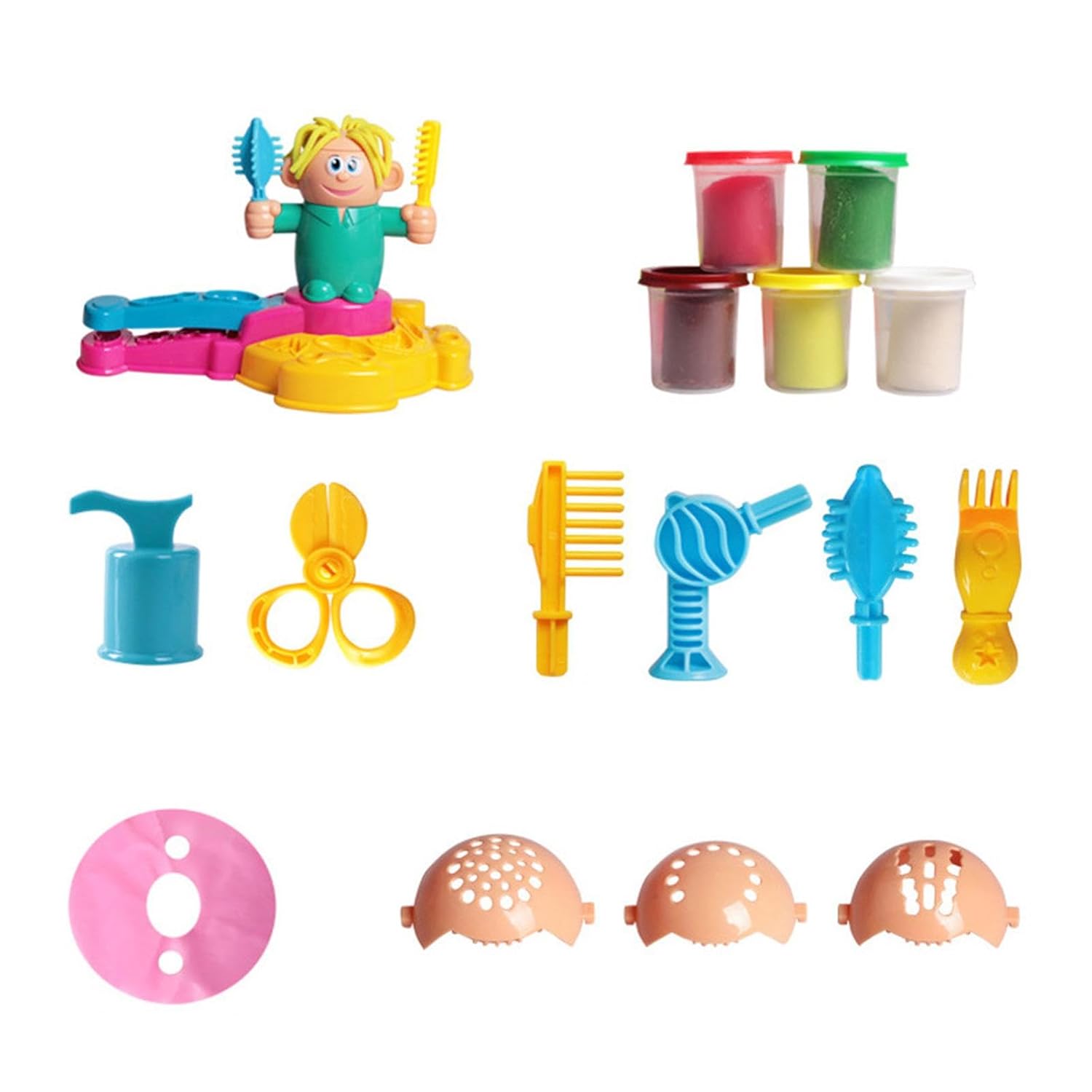 Quality material‘: Crafted from quality plastic, this color clay haircut playset is sturdy, ensuring it can withstand repeated use over time
