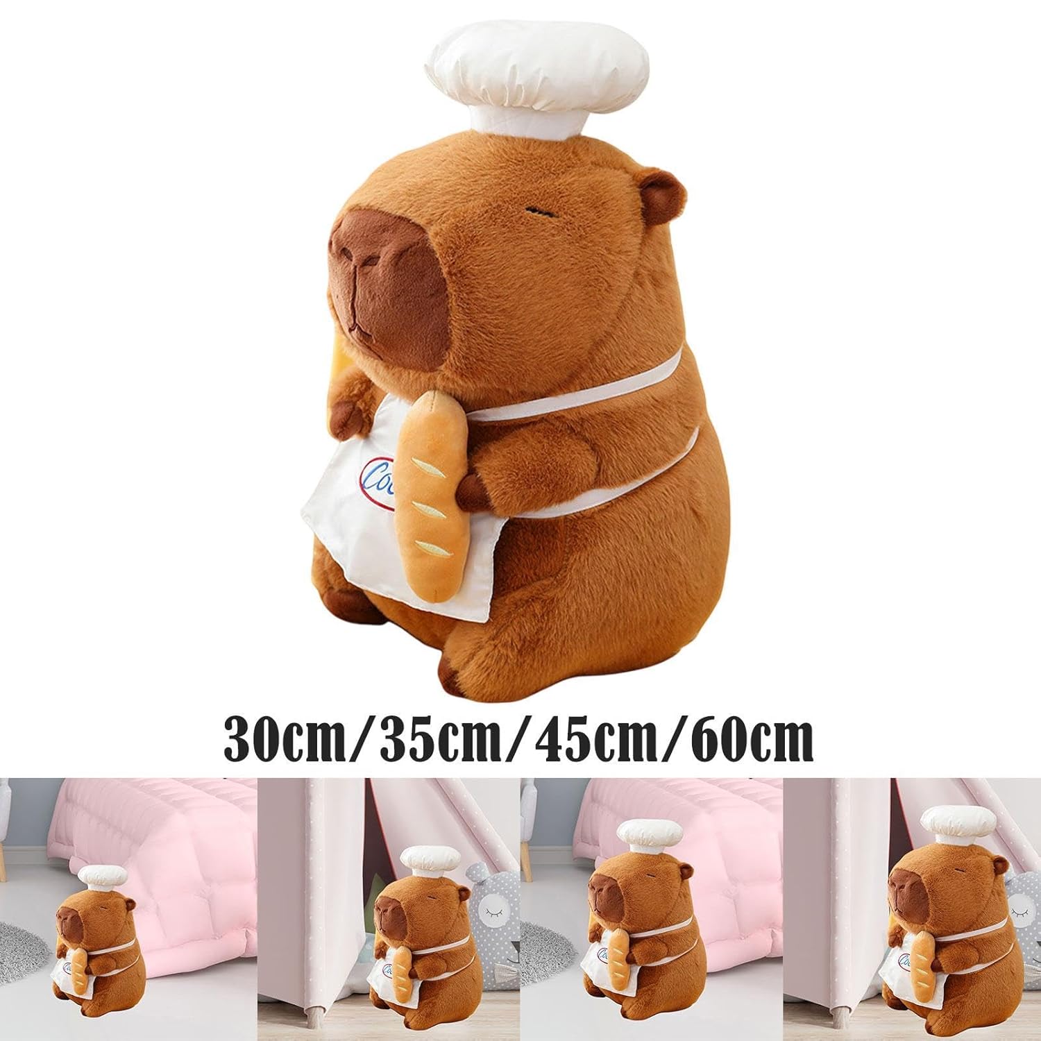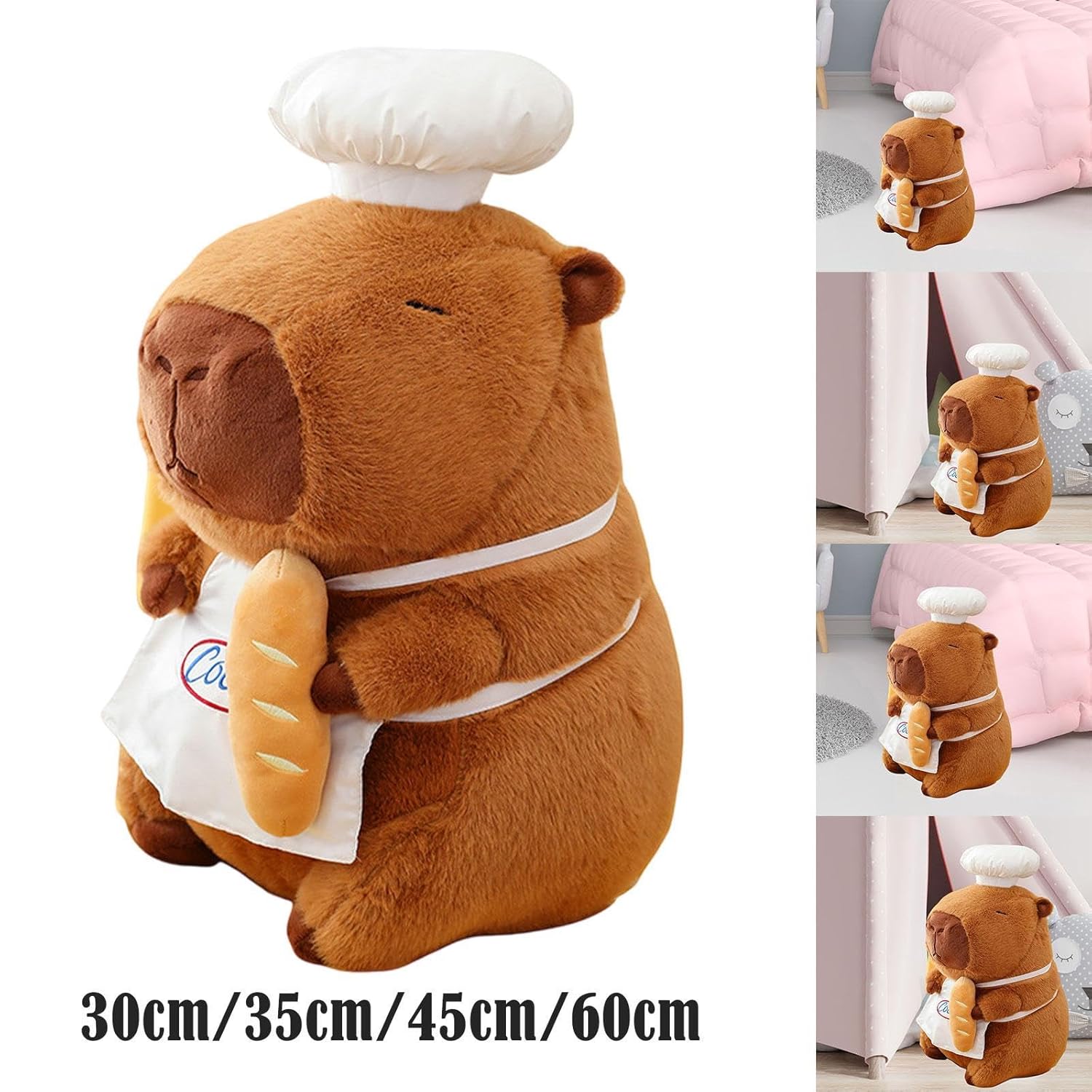 Cute Plush Doll‘: Lifelike capybara doll with chef clothes ,which is cute and lifelike.