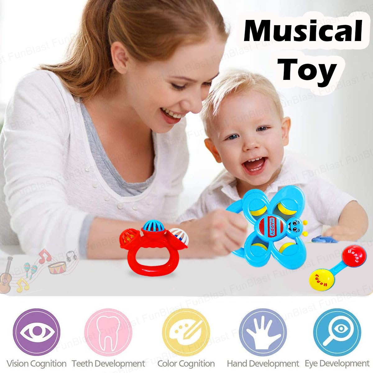 FunBlast Rattles for Babies – Pack of 3 Pcs Rattle Toys for Baby and Toddlers, Sound Rattle Toy for New Born Baby, Infants Toys, Early Development
