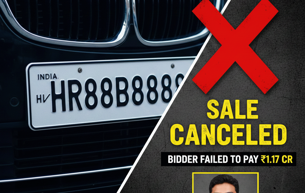 🚗 Record Bid! India’s Most Expensive Number Plate ‘HR88B8888’ Hits ₹1.17 Crore—But Was the Sale Completed?