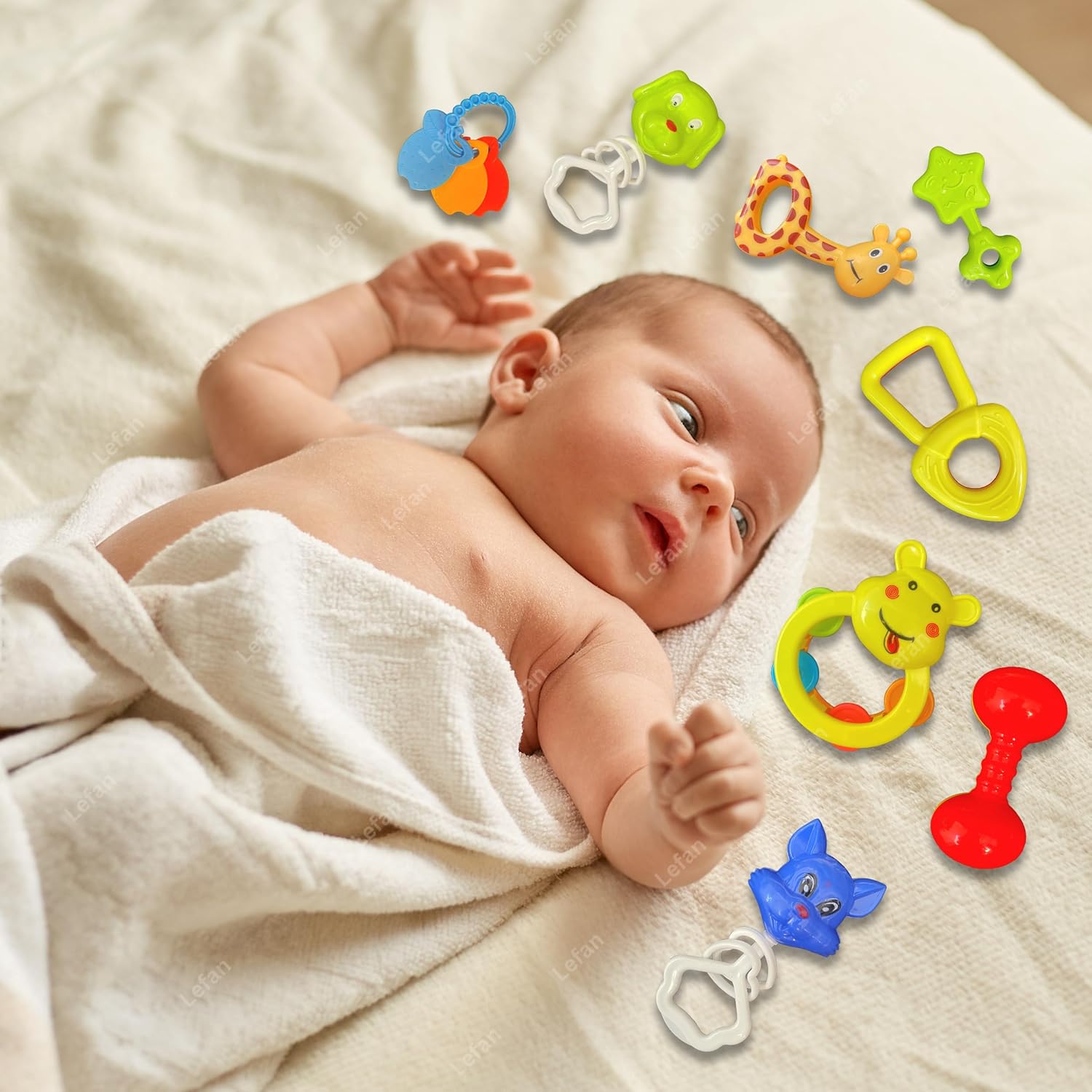 Lefan Baby Products Toys 8 Pcs Rattle Set with Teathers for Newborn Baby Gifts Toy for Babies Children Rattles Set 6-12 Months Teething Toys 3-6 Months Newborn Boy Girl