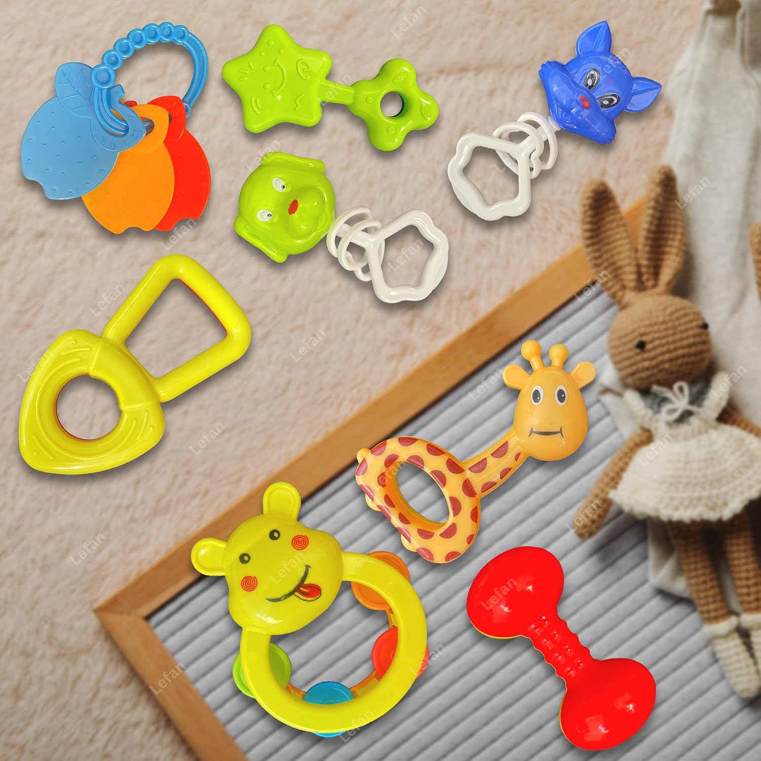 EARLY EDUCATION INFANT TOYS: When kids just begin to grasp things on purpose, shaking, pulling, rotating or on to teething.It contains 8 Rattles.