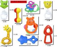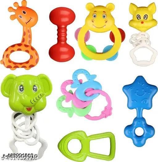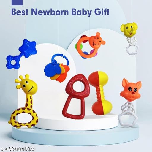 • Cable World Set of 8 Premium Rattle Set, Colourful Plastic Non Toxic 8 Attractive Rattles and Teathers for New Borns Multi Color