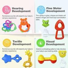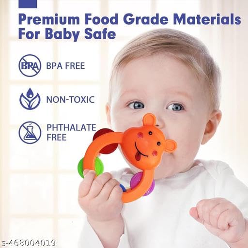 • Baby Products Toys 5 Pcs Rattle Set with Teathers for New Born Baby Gifts, Toy for Babies, Non-Toxic