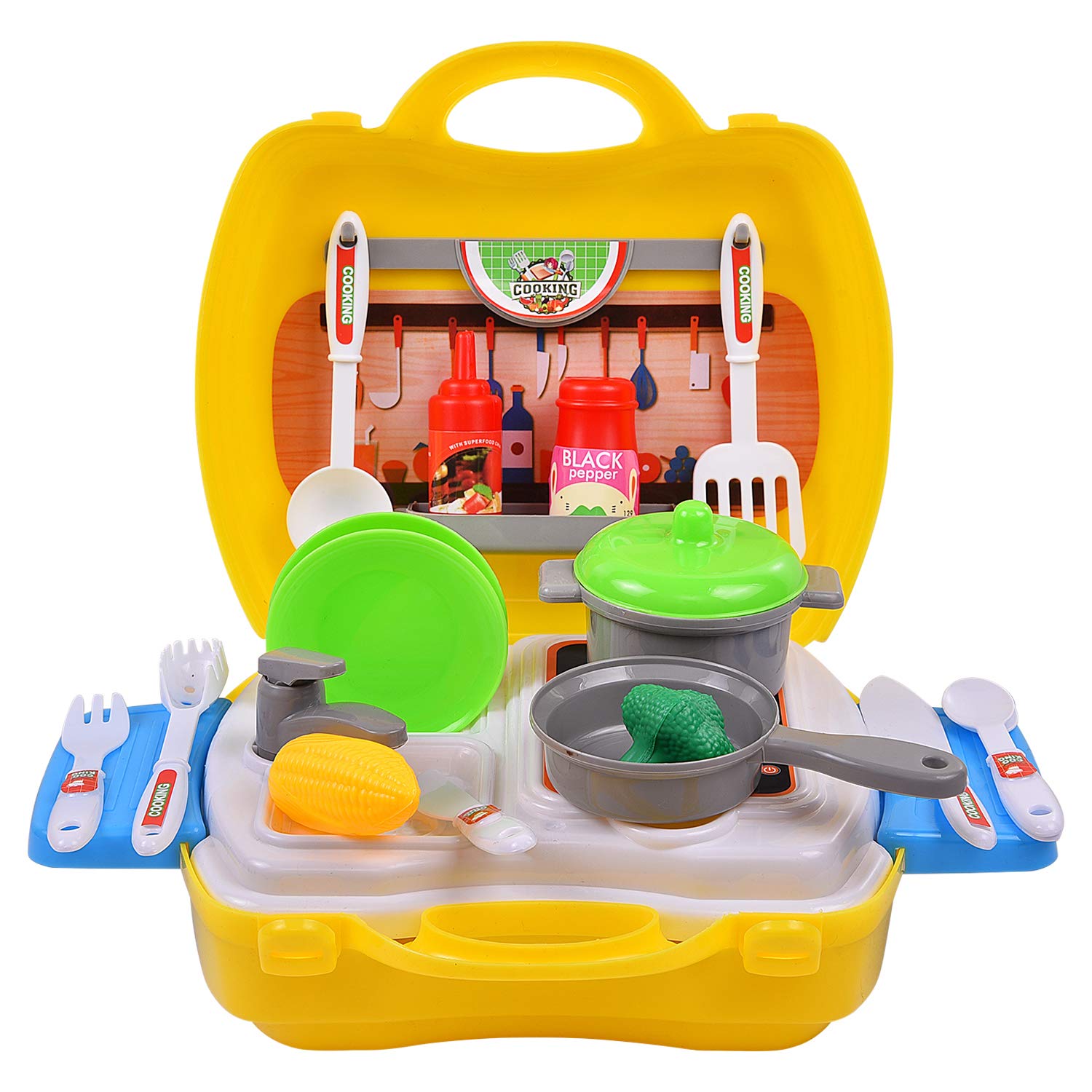 Portable suitcase make it easy to organize . Easy to play and store. Kitchen Food Playset can be easily stored with the foldable carrying case. You don’t need to worry about the pieces getting lost or damaged.